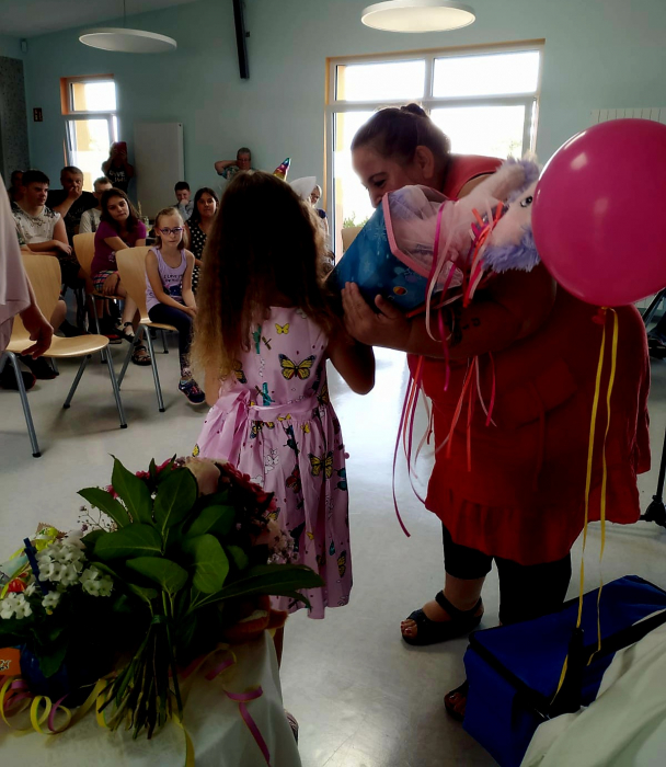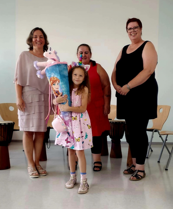 Zuvor gab es ein kleines musikalisches Programm von den Schülern unserer Schule. Um den Einstieg in unser Schulleben zu erleichtern, bekam Kimberly dabei kleine Geschenke als Mutmacher.